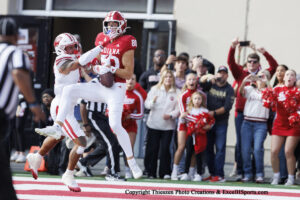 Indiana Hoosiers wide receiver Charlie Becker (80) with a touchdown at Memorial Stadium in Bloomington, IN. 11/15/25. Photo by Eric Thieszen.