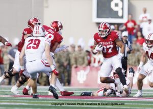 Roman Hemby had 58 of the Hoosiers 69 rushing yards as Charlie Becker followed up his career performance at Penn State with 5 catches for 108 yards and a touchdown. Alberto Mendoza completed one pass for 6 yards as the Mendoza Brothers finished with 305 yards passing total. Elijah Sarratt did not play for the second straight game with a hamstring injury but is expected back for the Purdue game in two weeks.  Omar Cooper Jr, Holden States and former Badger Riley Nowakowski all caught a touchdown pass from Mendoza.