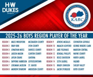 The Kentucky Association of Basketball Coaches would like to congratulate the recipients of the 2025 KABC Region Player of the Year awards, as voted on by member coaches throughout the state.