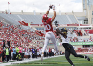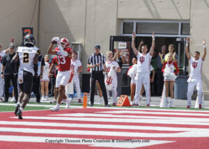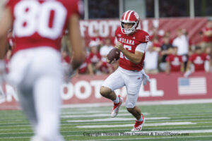Elijah Sarratt caught three touchdown passes from Fernando Mendoza as the #22 Excel H Sports Ranked Indiana Hoosiers beat the Kennesaw State Owls 56-9 Saturday Afternoon on Merchants Bank Field at Memorial Stadium.