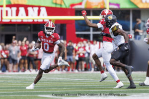 Indiana racked up 593 yards of total offense as the Indiana rushing attack had 313 yards on 39 carries with 7 different ball carriers. Lee Bebee Jr. had 11 carries for 95 yards and responded after his fumble last week against Old Dominion.