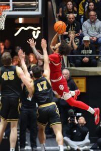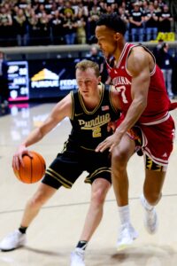 Purdue was coming off its third home loss of the season against top ranked Michigan Tuesday Night. The Boilers connected beyond the arc with Braden Smith and Fletcher Loyer hitting back-to-back triples to give Purdue a 6-0 lead to start the game. Tucker DeVries hit a three to get Indiana on the scoreboard, but Purdue extended the lead to 21-12 with 8:44 left in the first half. Purdue led 46-29 at half as the trio of Trey Kaufman-Renn, Braden Smith and Fletcher Loyer had 37 of the teams 46 points.
