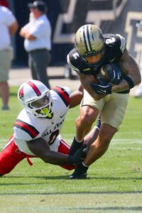Purdue’s defense was led by Tahj Ra-El with seven total tackles aided by Mani Powell’s five total tackles, Charles Correa with four and Braylon Charles, Crew Waldey, Sanders Ellis, C J Madden and T J Lindsay with three total tackles.