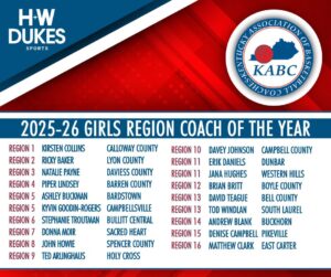 Each year, coaches from each region vote to select the Kentucky Association of Basketball Coaches Region Coach of the Year.