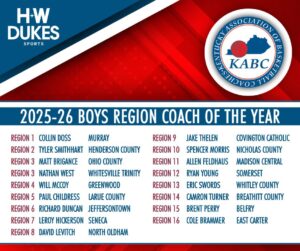 Each year, coaches from each region vote to select the Kentucky Association of Basketball Coaches Region Coach of the Year.
