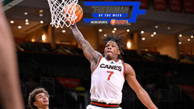 “He is one of the best freshmen I’ve coached,” Miami coach Jai Lucas said last week. “In the sense of his physicality and his ability to play through contact. … he did a good job carrying the scoring load.”