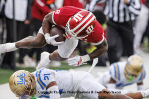 The Hoosiers scored on the next three drives as Roman Hemby scored two rushing touchdowns and Fernando Mendoza found Elijah Sarratt on a 1-yard touchdown pass as the Hoosiers led 28-0 with 8:55 left in the second quarter. Sarratt extended his streak of consecutive games with a reception to 46 and has scored a touchdown in the Hoosiers’ last five games. Indiana caused a Bruins fumble when Jalen Berger was stuffed for no gain and Isaiah Jones forced the fumble and Hosea Wheeler recovered the ball.