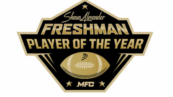 Each week during the 2025 season the Maxwell Football Club will recognize an outstanding performance by a college freshman with the Shaun Alexander Freshman Player of the Week award. The Shaun Alexander Player of the Week will be recognized for overall performance on offense, defense or special teams and players selected do not have to be represented on the Shaun Alexander Award preseason watch list.