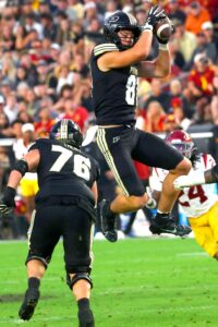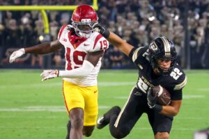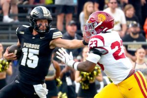 Trojan quarterback, 6’4 230-pound Jayden Maiava, a UNLV transfer, yes that’s where current Boilermaker Head Coach Barry Odom came from; started the Trojan offense by driving the field with a combination of passing and running before the Boilermaker defense made their stand deep in the red zone.