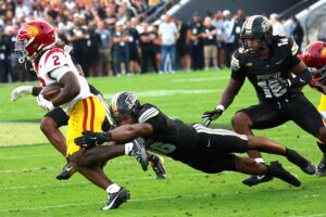 Mani Powell of Purdue – tackling Waymond Jordan of USC