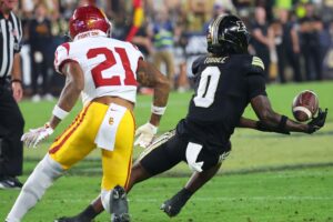 Jayden Maiava of USC – passing over Mani Powell of Purdue to hit King Miller out of the backfield