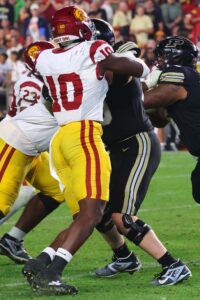 Braylan Shelby of USC – trying to bull rush his way into the Purdue backfield