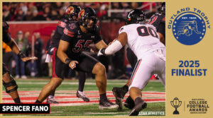 DALLAS (FWAA) – Three finalists for the 2025 Outland Trophy – offensive tackle Spencer Fano of Utah, center Logan Jones of Iowa and defensive tackle Kayden McDonald of Ohio State – were announced Tuesday by the Football Writers Association of America.